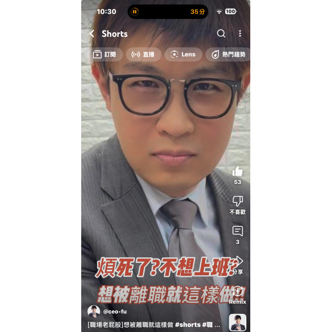 在最新的影片中,我透過「職場老屁股」的荒謬行徑,演繹了「想被離職就這樣做」的反面教材。職場上,擺爛的員工會被老闆炒魷魚;但在殘酷的商場上,如果企業主思維僵化、拒絕改變,那麼把你「炒魷魚」的將是整個市場!